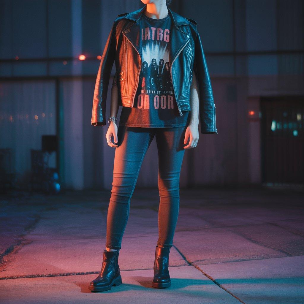 Going to a concert is all about energy and that should show in your outfit. A band tee (whether it’s the artist you’re seeing or just a cool graphic) with a leather (or faux-leather) jacket gives a bold, confident vibe. Skinny or slim jeans keep the look modern and ready for a crowd.