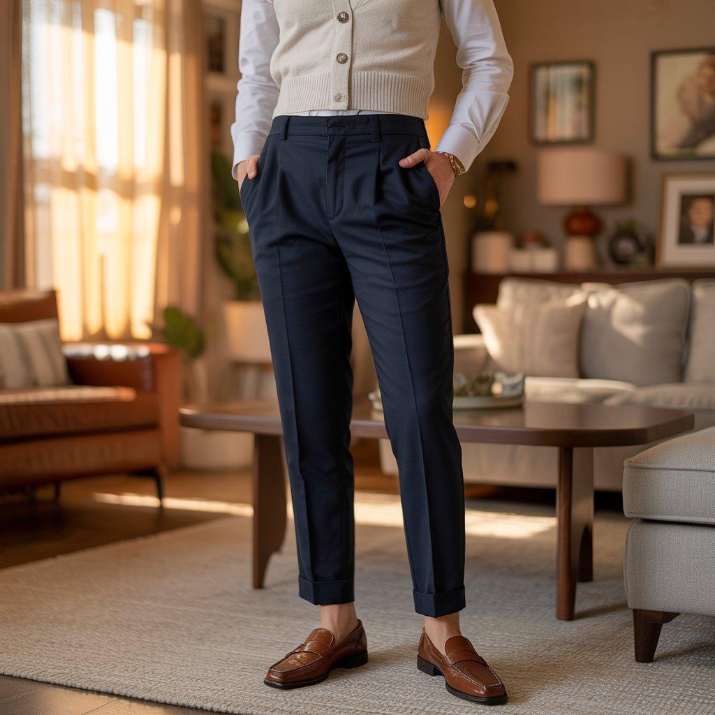 Trousers in a straight or slightly tapered fit look clean without being stiff. Pair them with simple loafers or low-key dress shoes. Keep accessories minimal: a watch or a small necklace is enough.