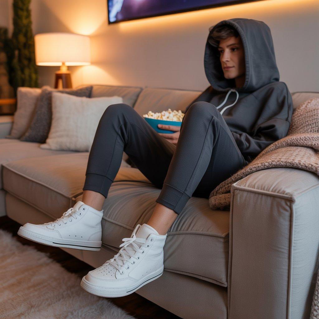 5. Movie Night: Hoodie + Slim Joggers + High-Top Sneakers