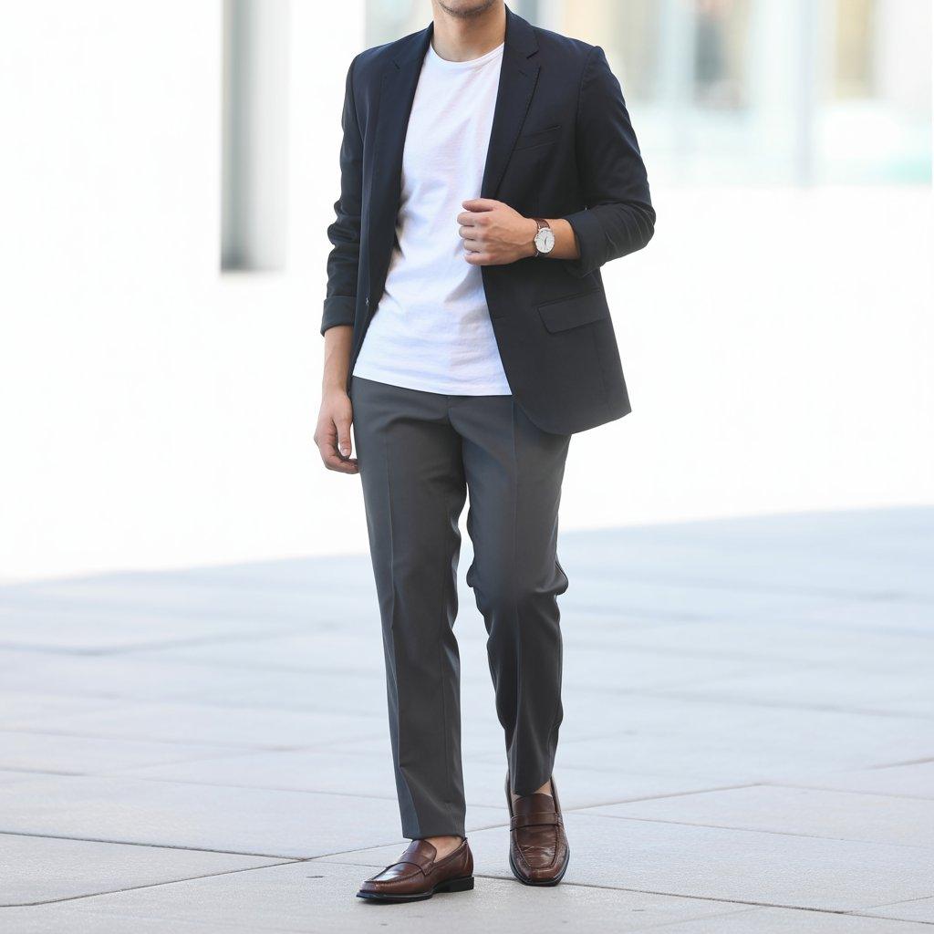 Loafers or simple slip-on shoes elevate the whole look. They’re comfortable enough to wear all evening but look sharper than sneakers. You can add a simple belt and watch to polish the outfit further.