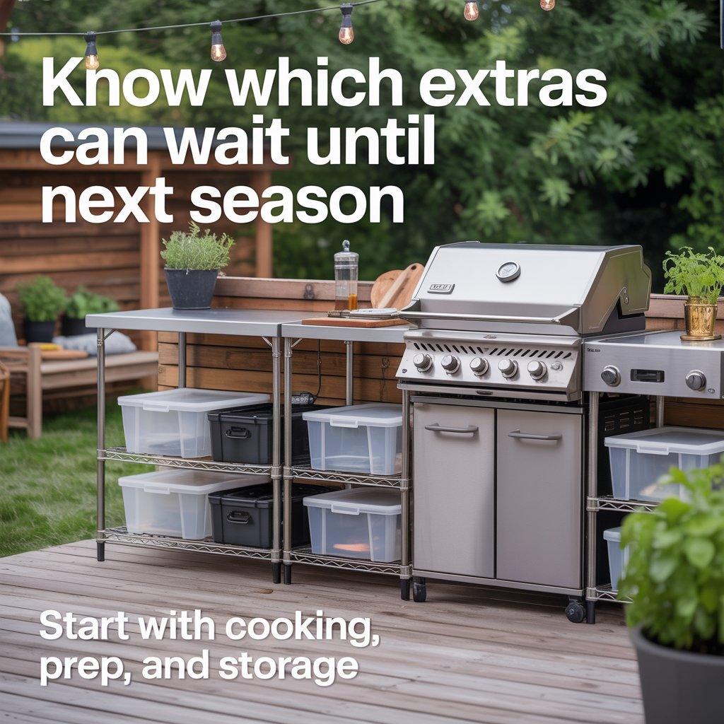 Start with the cheapest outdoor kitchen setup that covers the basics