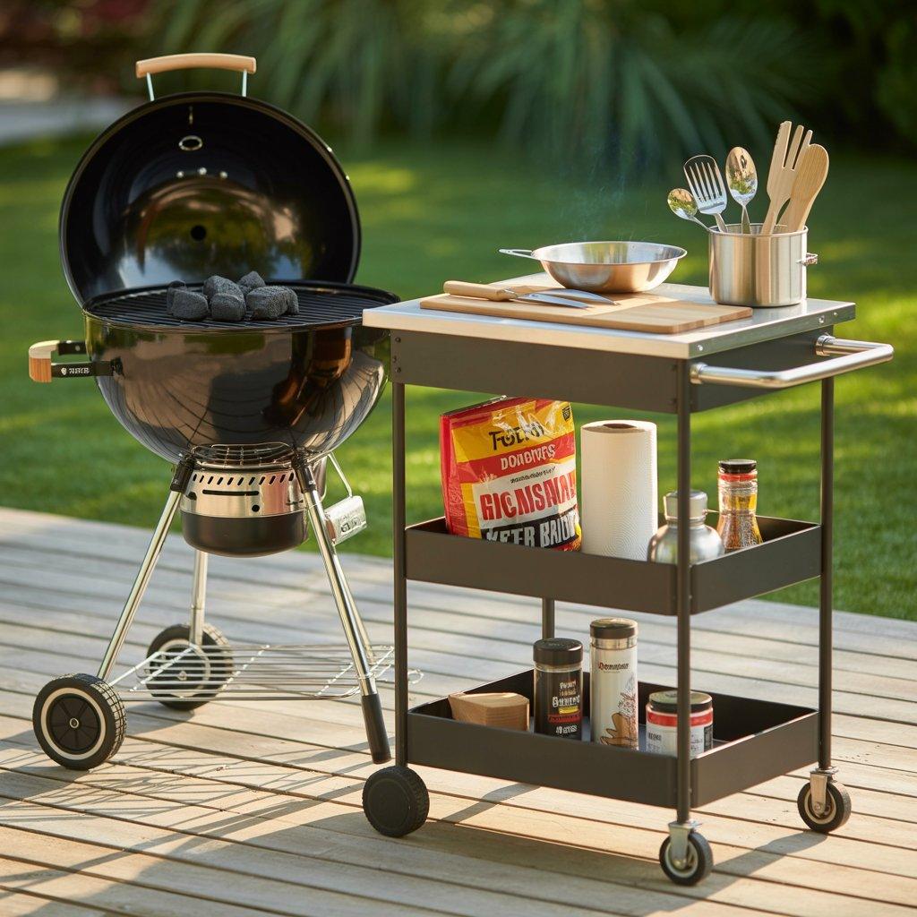 • Flexibility: Rolls right next to the grill or folds away when not in use, maintaining the minimalist aesthetic the article recommends.