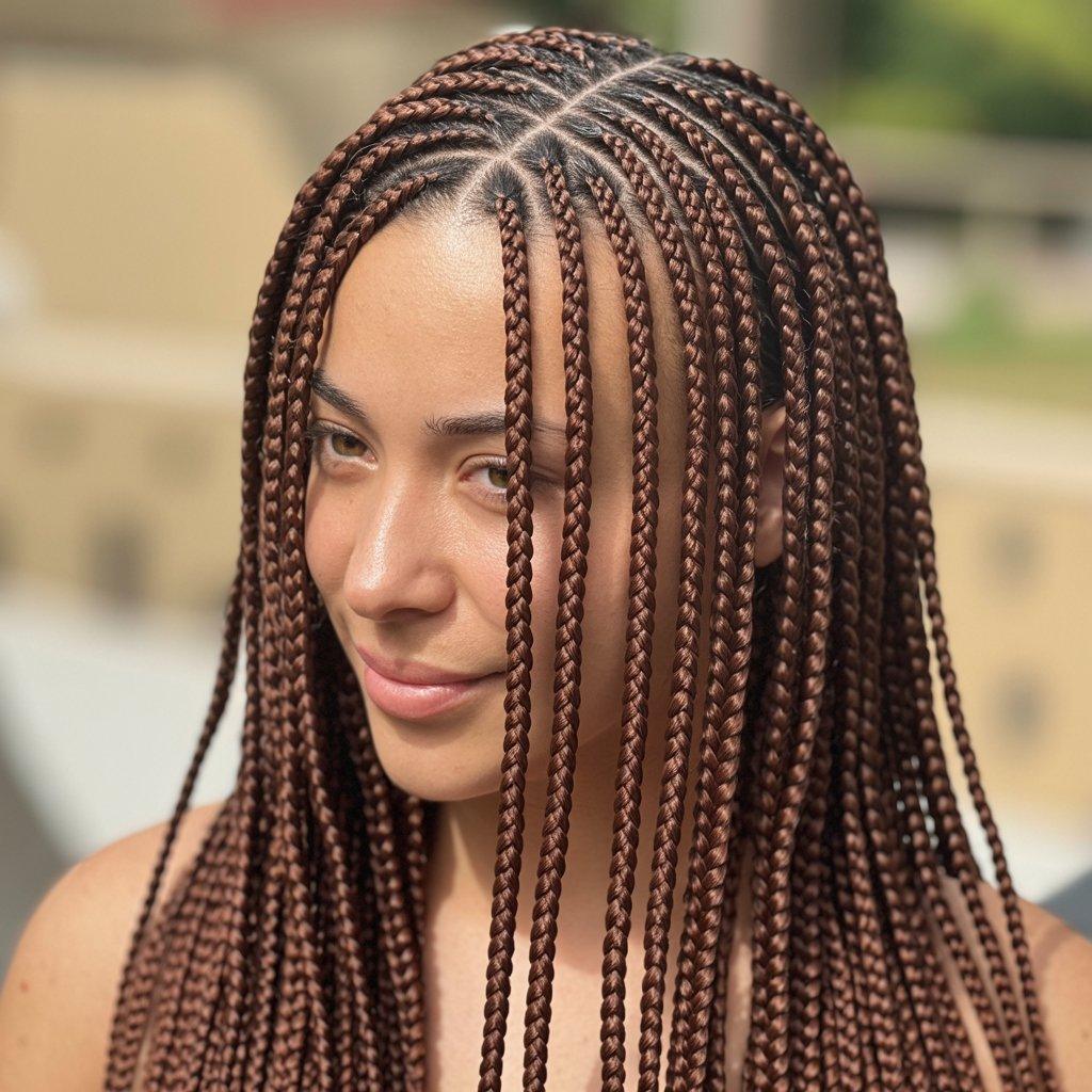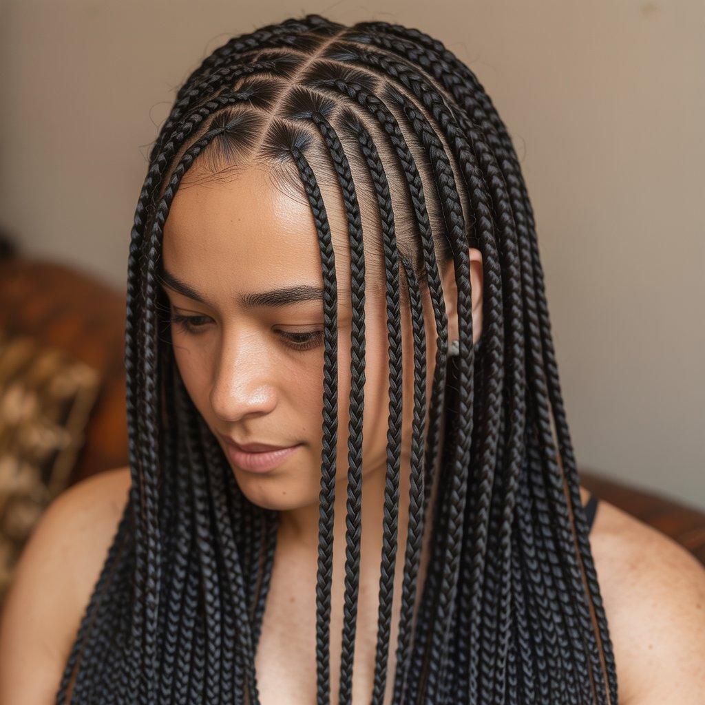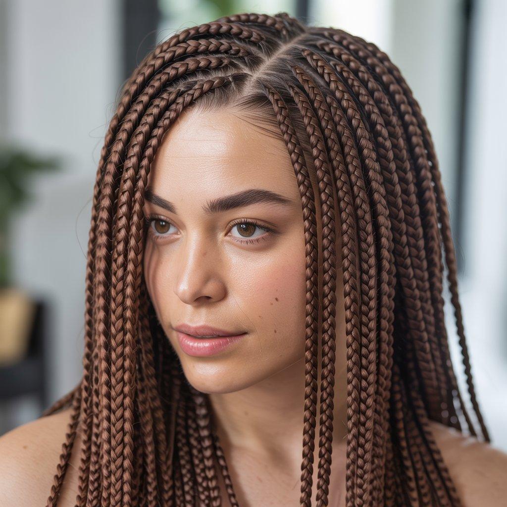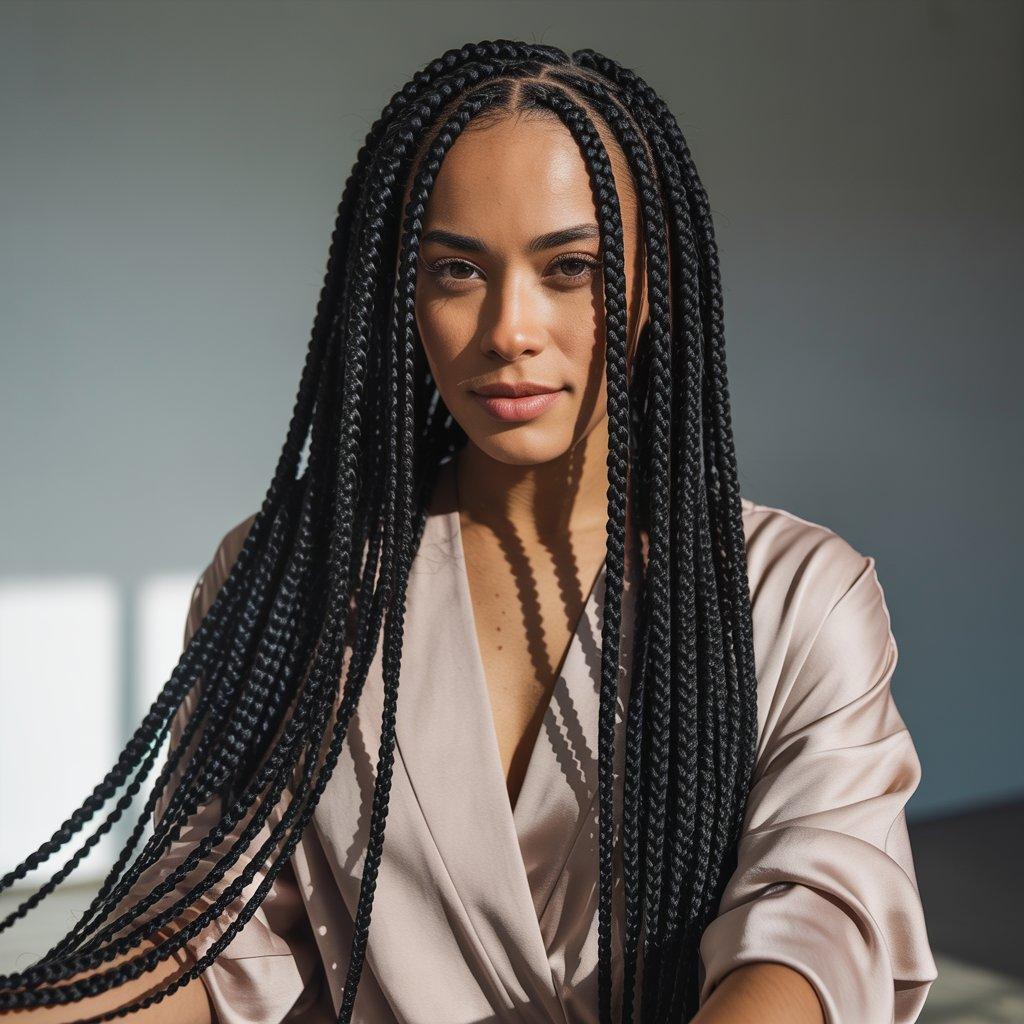 Ask your stylist to keep the braids lightweight. Long braid hairstyles should flow, not feel heavy. When done right, they look sleek and confident without trying too hard.