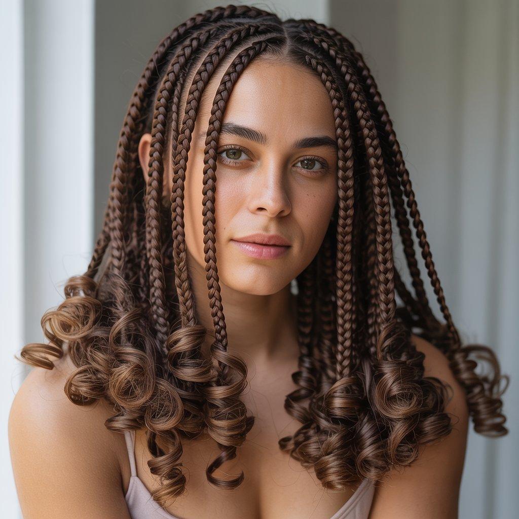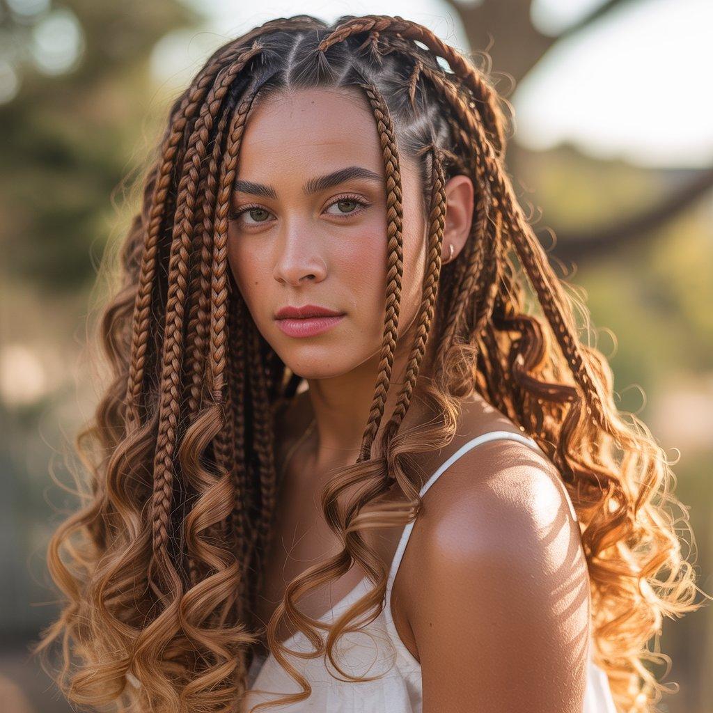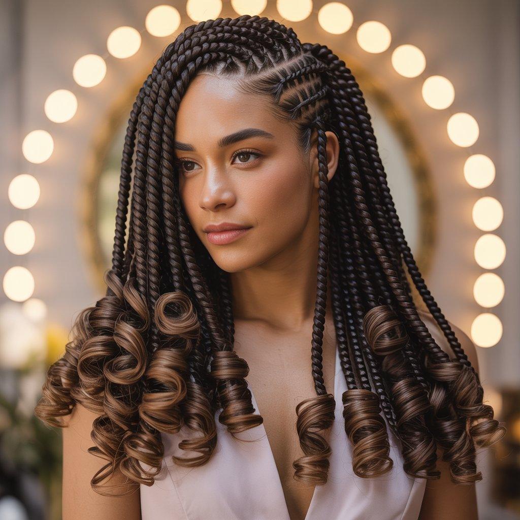 I’ve noticed this style works well for special events. It feels dressed up without being complicated. The curls give volume, especially if you choose waist-length braids. It frames the face nicely and adds movement.