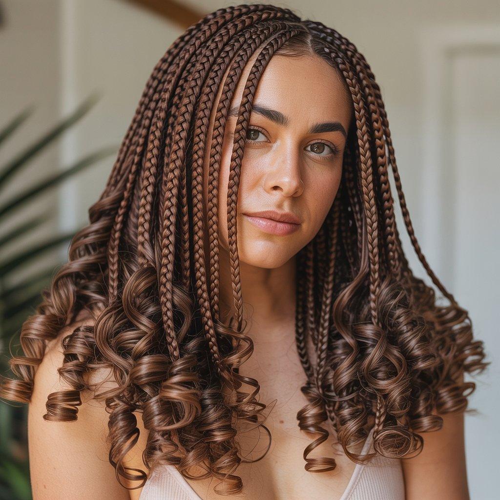 I’ve seen this style work well for people who want long braid hairstyles but don’t want a blunt finish. The curls make the braids look lighter and more natural. It also adds volume at the ends.