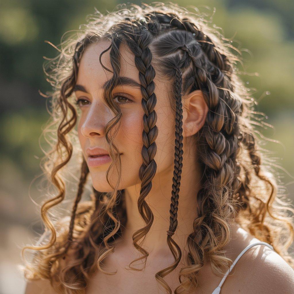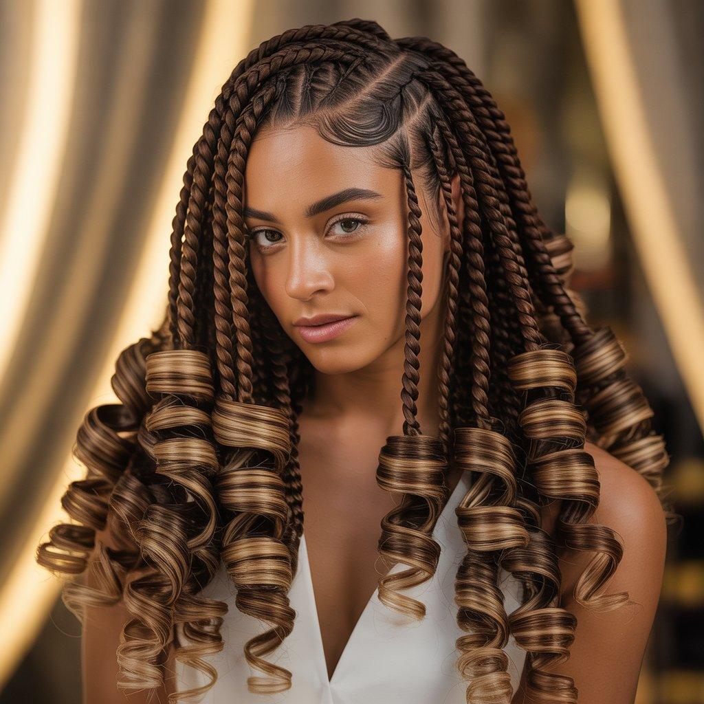 Instead of braiding all the way to the tips, this style leaves the ends curly. The braids stop a few inches before the bottom, and loose curls finish the look. It feels softer and less structured.