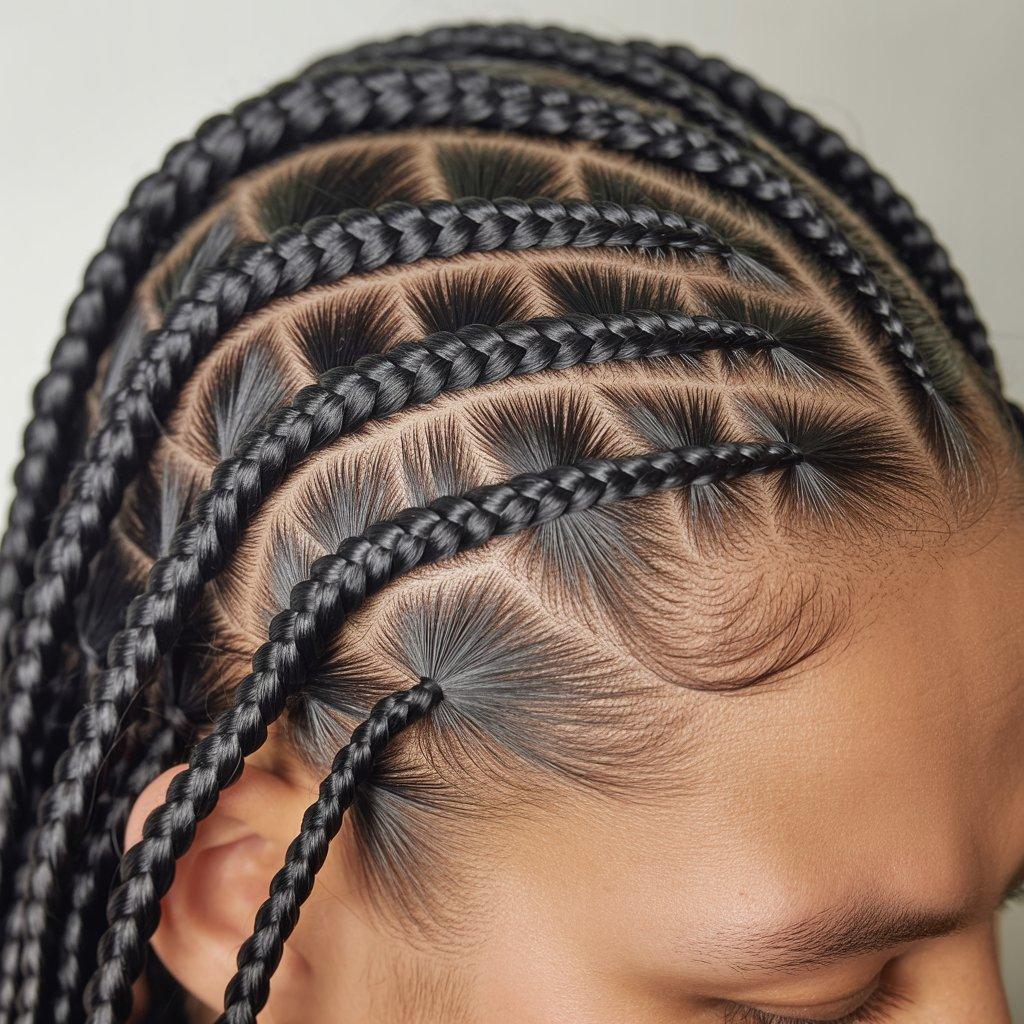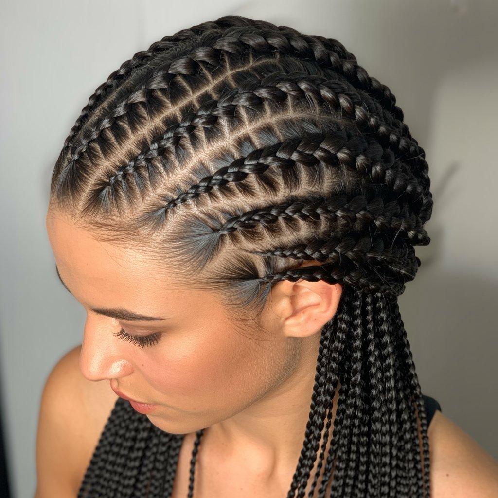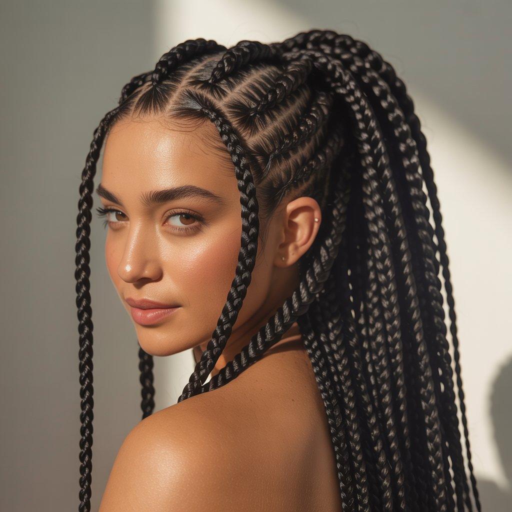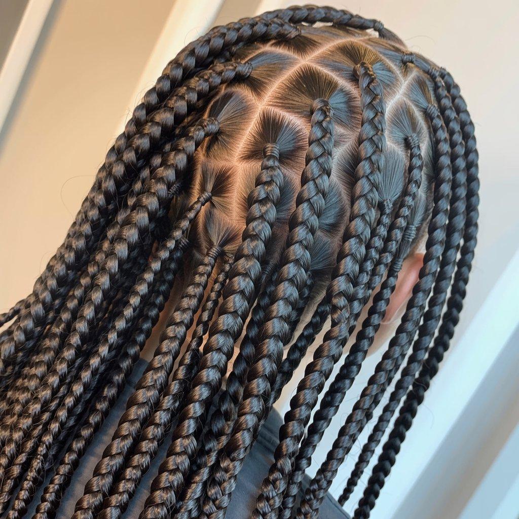 I’ve seen this style work well for people who want box braids but don’t want the standard layout. The angles give the scalp a more creative pattern, especially when the hair is styled up. It looks clean and intentional.