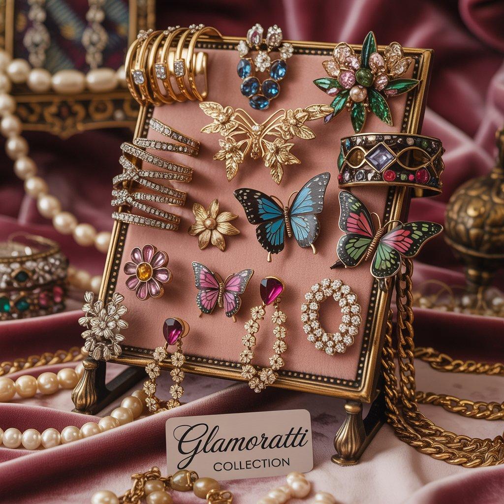 You can also lean into the “Glamoratti” trend with chunky gold cuffs and sculpted shoulders. Whether you’re adding a butterfly pin to a cardigan or layering three gold chains, the goal is to look like you curated your jewelry over years of thrifting and collecting.